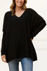 This stylish sweater features long dolman sleeves and a relaxed V-neck, offering timeless appeal. Crafted from ultra-soft fine-knit yarn, it provides exceptional comfort and is perfect for layering over shirts or dresses. Enjoy all-day ease with this effortlessly chic, oversized design. Characteristics: * Fabric: 50% Viscose 30% Nylon 20% Acrylic * Colors: Burgundy, Teal Blue or Black * Model: 5'8", size M/L * V-Neck * Oversize Sweater * Loose fit * Long Sleeves * Length : 30" Our sizes run a little large due to our comfortable fits and relaxed silhouettes.