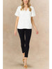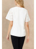 The Lucie blouse is a delicate blend of feminine charm and easy elegance. Crafted from 100% polyester, this lightweight top features tonal floral embroidery throughout, a scalloped V-neckline with lace trim, and soft flutter sleeves that move with grace. Perfect for pairing with denim or dressing up your favorite trousers, Lucie adds a romantic touch to any outfit, from casual lunches to garden parties. Characteristics: * Fabric: 100% Polyester * Length: 26" (small) * Color: White * Tonal Floral Embroidery * V-Neckline with Lace Trim * Flutter Sleeves * Lightweight, Airy Drape Our sizes run a little large due to our comfortable fits and relaxed silhouettes.