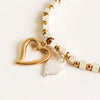 This bracelet combines square silver beads with round gold accents, featuring a gold open heart charm and a solid silver heart charm for a balanced, elegant look.