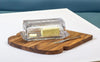 This elegant glass quarter-pound butter dish with matching cover is the perfect combination of classic 50s-retro chic and design-forward modern style.