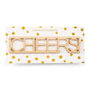 Open your favorite bottle of bubbly or beer with this handy opener that aptly says "CHEERS"! Bottle openers are practical party favors that no one will forget to take home. Featuring a trendy, matte gold finish this unique opener will easily fit into any style of party or wedding décor. 4 1/2" (L) x 1/8" (W) x 1" (H) Alloy metal Includes trendy backer card.